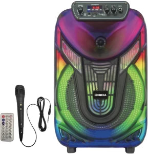 Tell the DJ to turn it up with this amazing Omega speaker! Fully portable and easy to bring to parties, events even small or large gatherings, or if you just want to pick up the mic for a quick song. Powered by a strong (Built-in 1800mAh rechargeable battery) so you can forget about load shedding blues! Specifications: Peak Output Power(In RMS): 10W Frequency Response:100Hz-20KHz Bluetooth FM Radio 8" Rechargeable Speaker With USB & TF With MIC input With Remote Control With DJ Light With 1 Wired Microphone Hand-held design What's in the box 1 x Omega speaker 1 x Remote control 1 x Mic
