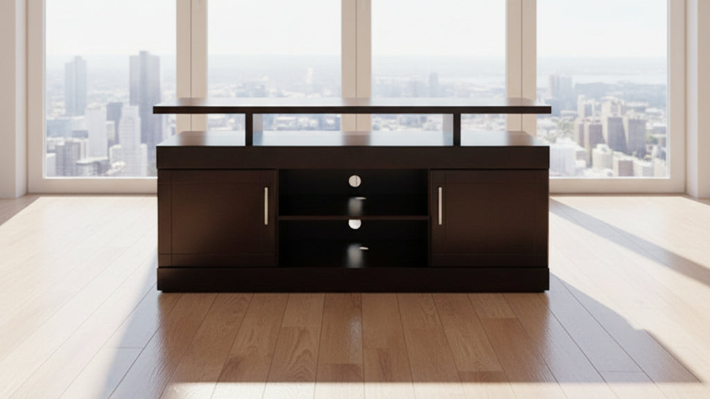 The Plasma Stand MOD14 Dark Brown or Black is a stylish and sturdy TV unit crafted with a rich dark brown finish. Its durable design provides reliable support for your television while bringing a warm, modern touch to your living room décor.